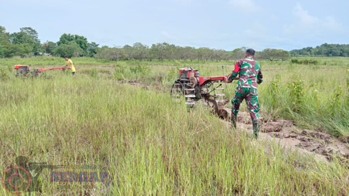 Pratu Hendrik Hapu turut turun langsung membantu dan memberikan semangat kepada para petani agar proses pengolahan lahan berjalan lancar dan tepat waktu. Kehadiran Babinsa dianggap mendorong produktivitas serta disiplin kerja petani.