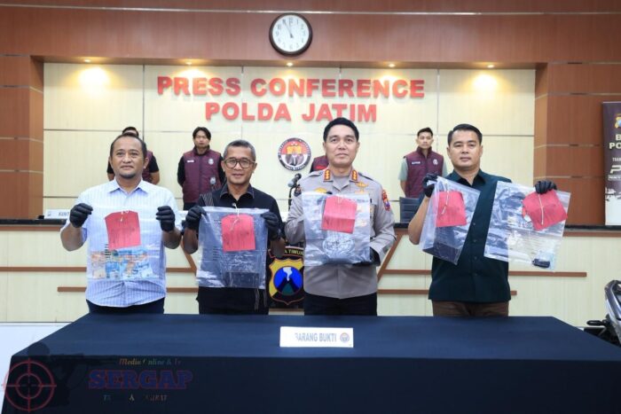 SURABAYA, || Direktorat Reserse Kriminal Umum (Ditreskrimum) Polda Jawa Timur mengungkap peredaran bahan peledak berupa bubuk petasan atau mesiu di Jalan Raya Menanggal, Gayungan, Surabaya, Selasa (3/3/2026).