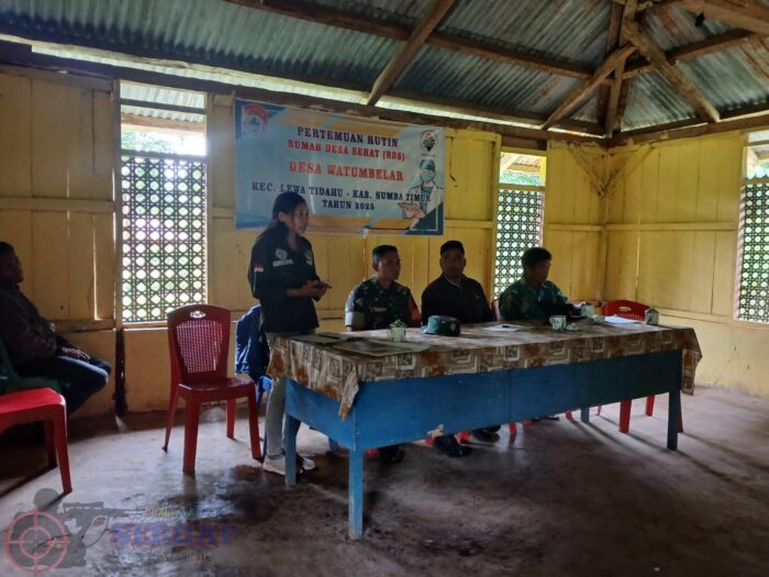 LEWA,||Babinsa Koramil 01/Lewa, Kodim 1601/Sumba Timur, Sertu I Nengah S menghadiri undangan pertemuan rutin Rumah Desa Sehat yang berlangsung di Kantor Desa Watumbelar, Kecamatan Lewa Tidahu, Kabupaten Sumba Timur, Rabu (04/03/2026).