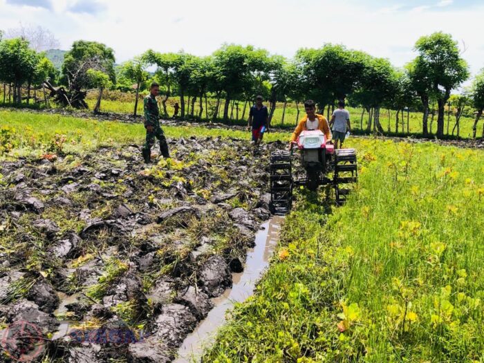 Perkuat Ketahanan Pangan, Babinsa Koramil Karera Bantu Petani Olah Sawah