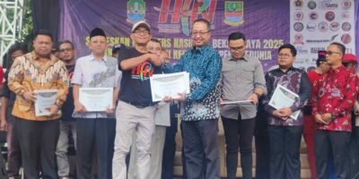 Kepala Dinas Komunikasi Informatika Persandian dan Statistik (Diskominfosantik) Kabupaten Bekasi, Yan Yan Akhmad Kurnia mewakili Bupati Bekasi pada puncak Hari Pers Nasional (HPN) Tingkat Kabupaten Bekasi di Halaman Museum Gedung Juang Bekasi, Desa Mekarsari, Kecamatan Tambun Selatan, Kabupaten Bekasi pada Sabtu, (10/05/2025).
